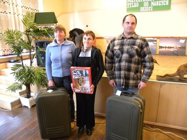 Nasi zwycięzcy z nagrodami Dnia 21.10.2011 r. na zaproszenie Dyrektora Nadgoplańskiego Parku Tysiąclecia w Kruszwicy nasi uczestnicy po raz drugi wzięli udział w teście pt. "Skąd Nasz Ród" oraz konkursie plastycznym "Barwy Nadgopla". Test obejmował informację o NPT, a także wiedzę na temat flory, fauny i historii parku. Odpowiadając na 28 pytań testowych uczestnicy WTZ p. Agnieszka J. oraz p. Grzegorz P. zajęli I miejsce i otrzymali przydatne nagrody w postaci dużych walizek podróżnych. Podczas kilkutygodniowych przygotowań wspierała ich p. Ewa Kaźmierska. Natomiast w konkursie plastycznym wzięli udział uczestnicy :p. Krzysztof M., p. Krzysztof S. oraz p. Teresa B., która zajęła III miejsce i w nagrodę otrzymała puzzle. Dziękujemy za zaproszenie. |